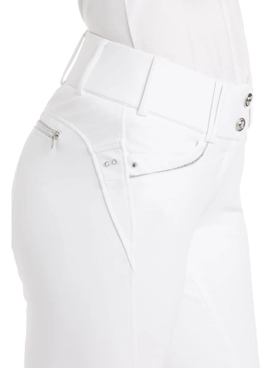 Designed with the dressage rider in mind, the Tri Factor X Grip is cut with a higher rise. It features signature Tri Factor compressive fabrication, cooling technology, and grip where you need it. The dazzle is in the details with rhinestone buttons, silver Lurex® thread embroidery, and vegan leather silver matte piping.