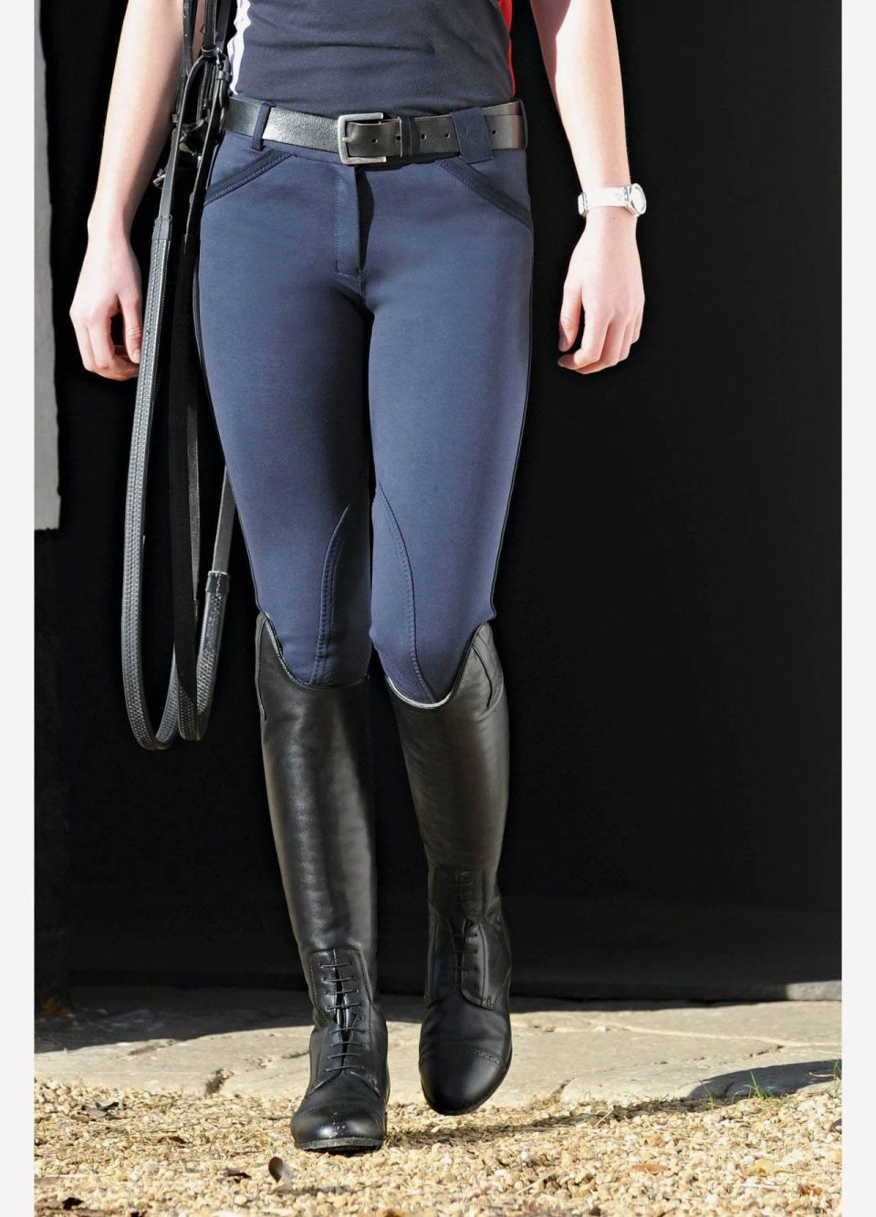 These smart low-waisted cotton knit breeches have a generous design to fit and flatter all figures. Easy to wash and comfortable to wear thanks to the 8% Lycra content. Allison has a flat front, two front pockets with piping detail and belt loops. They are ideal for everyday use!