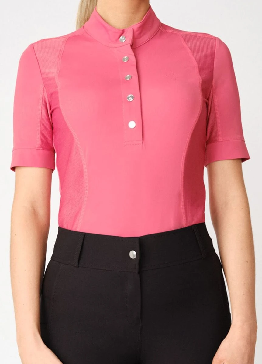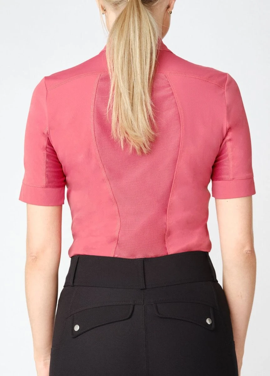 Short sleeve base layer made in technical polyamide blend and with breathable mesh panels. The garment’s stylish and functional features include stand-up collar with half button placket, decorative seams and tonal PS monogram print at chest.